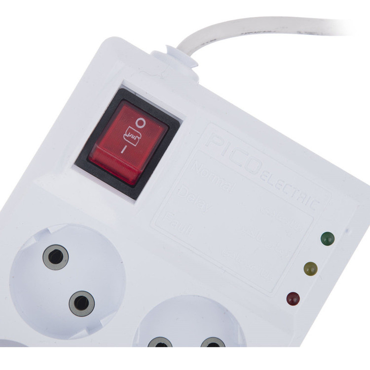محافظ برق پیکو یک محافظ 4 خانه کلیدار است و لوازم صوتی و تصویری و کامپیوتر در برابر نوسانات برق حفاظت میکند. ولتاژ قطع بالای آن 245 و ولتاژ قطع پایین 175 ولت است.