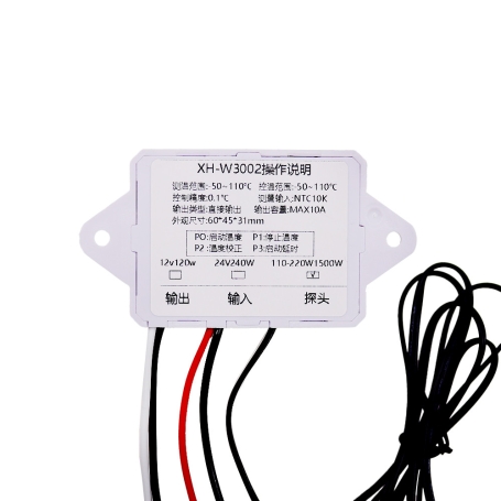ترموستات دیجیتال 220VAC مدل XH-W3002 یک دستگاه کنترل دما با قابلیت تنظیم خودکار در مدهای Heating و Cooling است. این دستگاه با استفاده از سنسور NTC10K و سیم 1 متری دما را در بازه 50- تا 110 درجه سانتیگراد اندازهگیری کرده و با توجه به دماهای Start و Stop، وضعیت سیستم گرمایشی یا سرمایشی را کنترل میکند. تنظیمات دما، کالیبراسیون، و تاخیر تغییر وضعیت خروجی به راحتی از طریق دکمههای تنظیم انجام میشود. پیغامهای نمایشگر برای اعلام خطاهای سنسور و دماهای غیرمجاز طراحی شده است و این ترموستات همراه با سنسور ضد آب عرضه میشود.