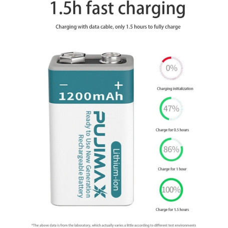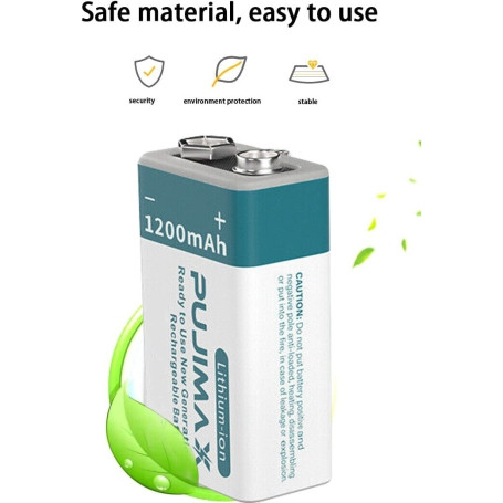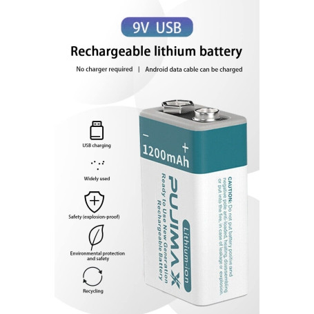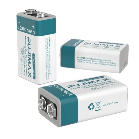 باتری کتابی 9 ولت لیتیوم یون قابل شارژ 1200mAh مارک Pujimax با ورودی Type-C