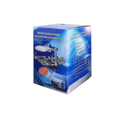 گیره مونتاژ ZD-10M تقریبا بزرگترین و کارآمد ترین گیره مونتاژ در بین موارد مشابه رو میزی است. قطر ذره بین 8.5 سانت بوده و دارای LED جهت ایجاد نور در هنگام لحیمکاری می باشد.