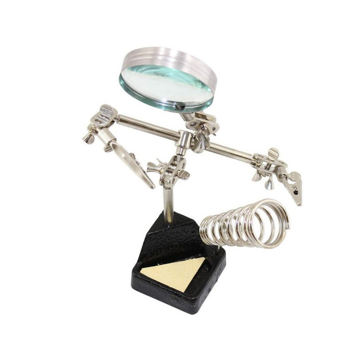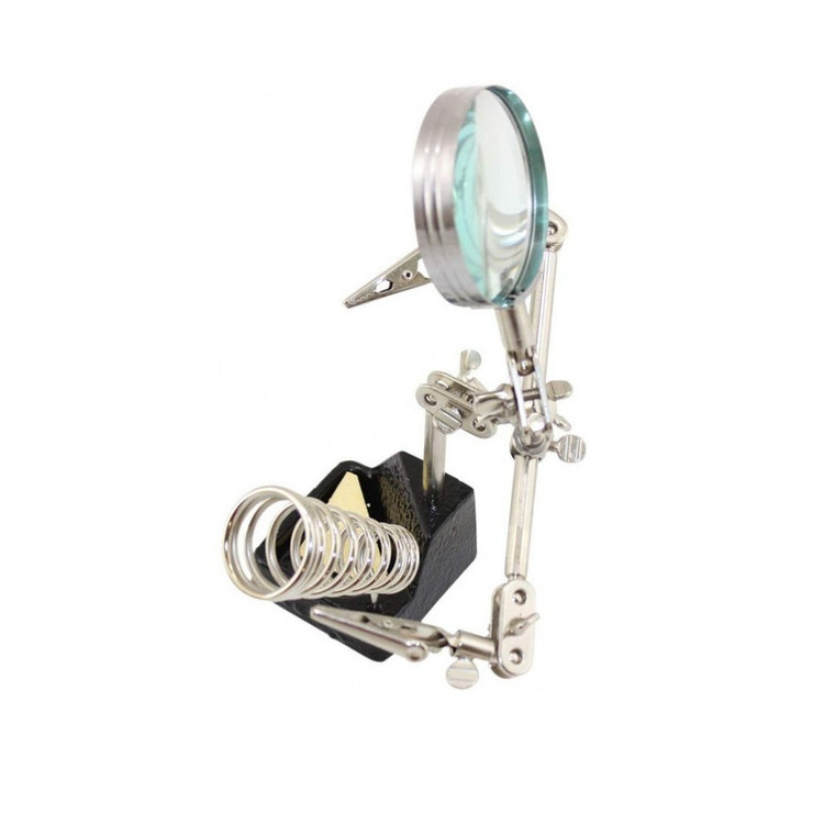 گیره کمکی مونتاژ مناسب و کاربردی برای ساخت و مونتاژ قطعات حساس، ایده آل برای همه ی کاربردهایی که نیاز به دست سومی دارند در این مدل پایه سنگین تر و ذره بین بزرگتر شده است، تا پایداری و دقت بیشتری صورت گیرد.