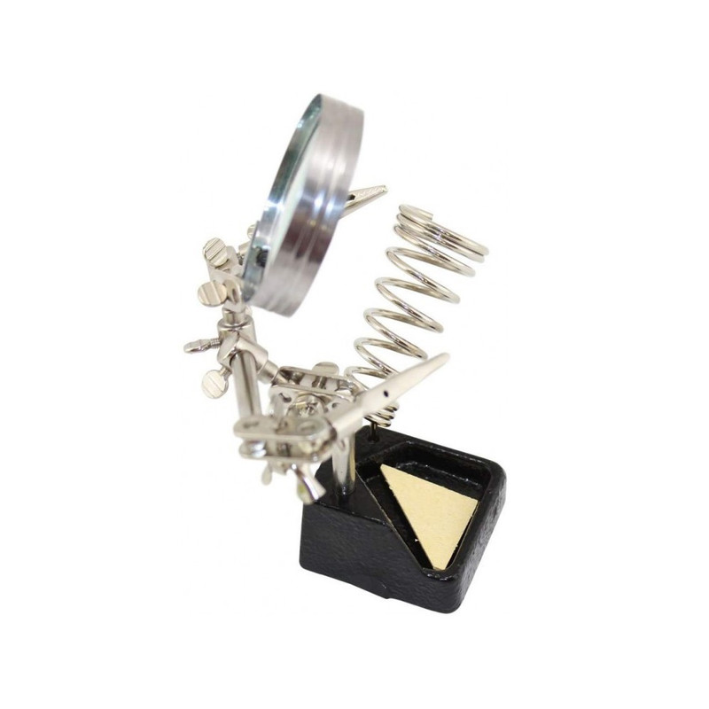 گیره کمکی مونتاژ مناسب و کاربردی برای ساخت و مونتاژ قطعات حساس، ایده آل برای همه ی کاربردهایی که نیاز به دست سومی دارند در این مدل پایه سنگین تر و ذره بین بزرگتر شده است، تا پایداری و دقت بیشتری صورت گیرد.